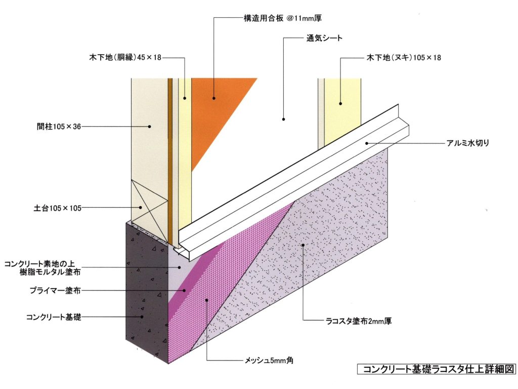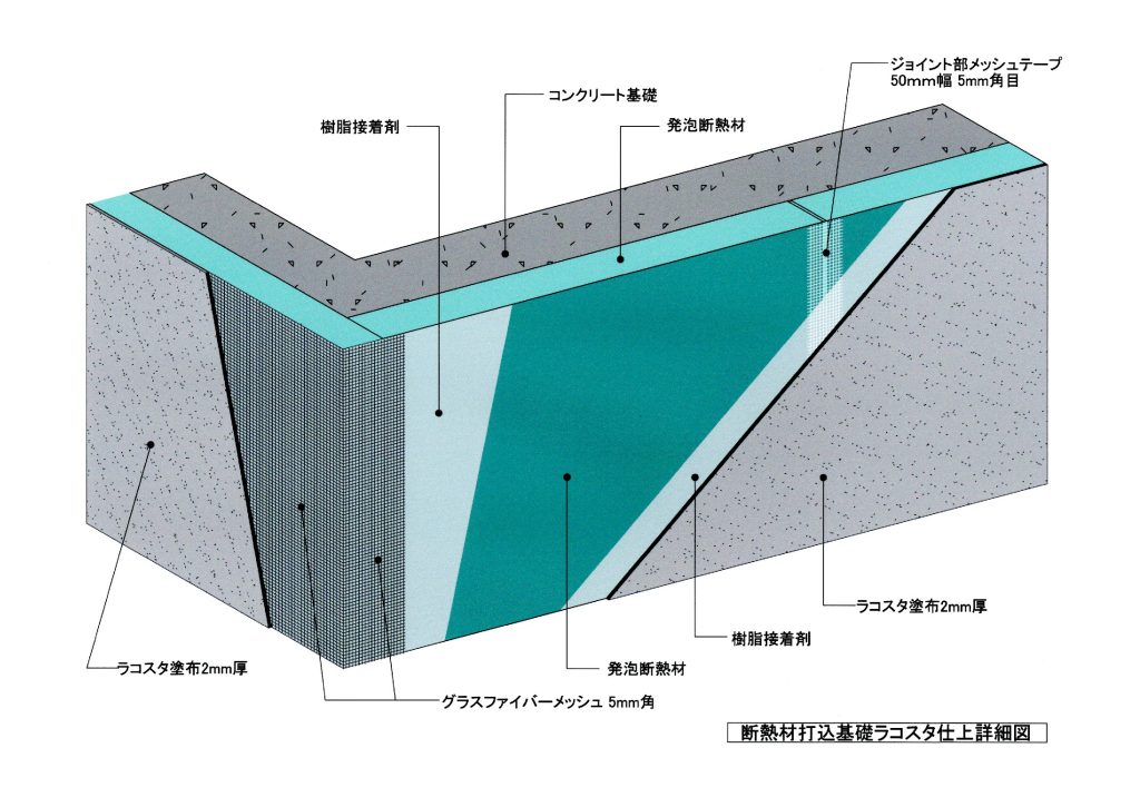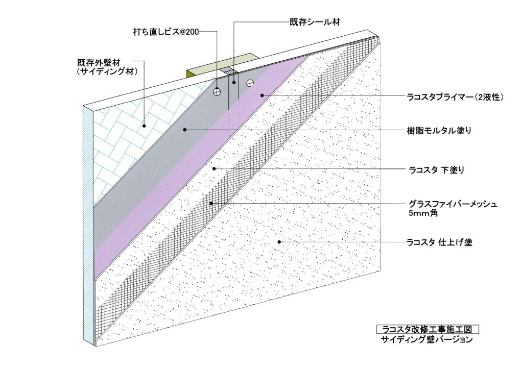 ラコスタは超弾力性・超防水性・超密着性を有する冬季間も施工可能な新開発の塗り壁材です。