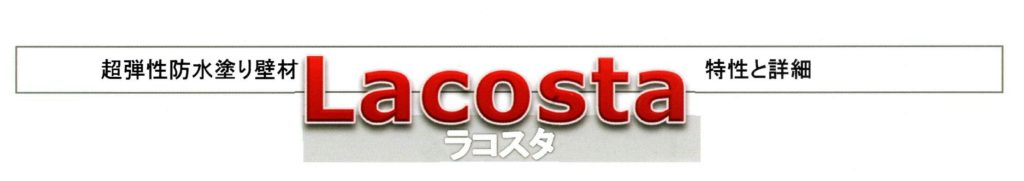 ラコスタは弾力性に特に優れ下地材のヒビにも対応する強度を持ち、水を通さない防水性があり、接着剤メーカーの製造ならではの強力な密着性(接着力)を有しています。
