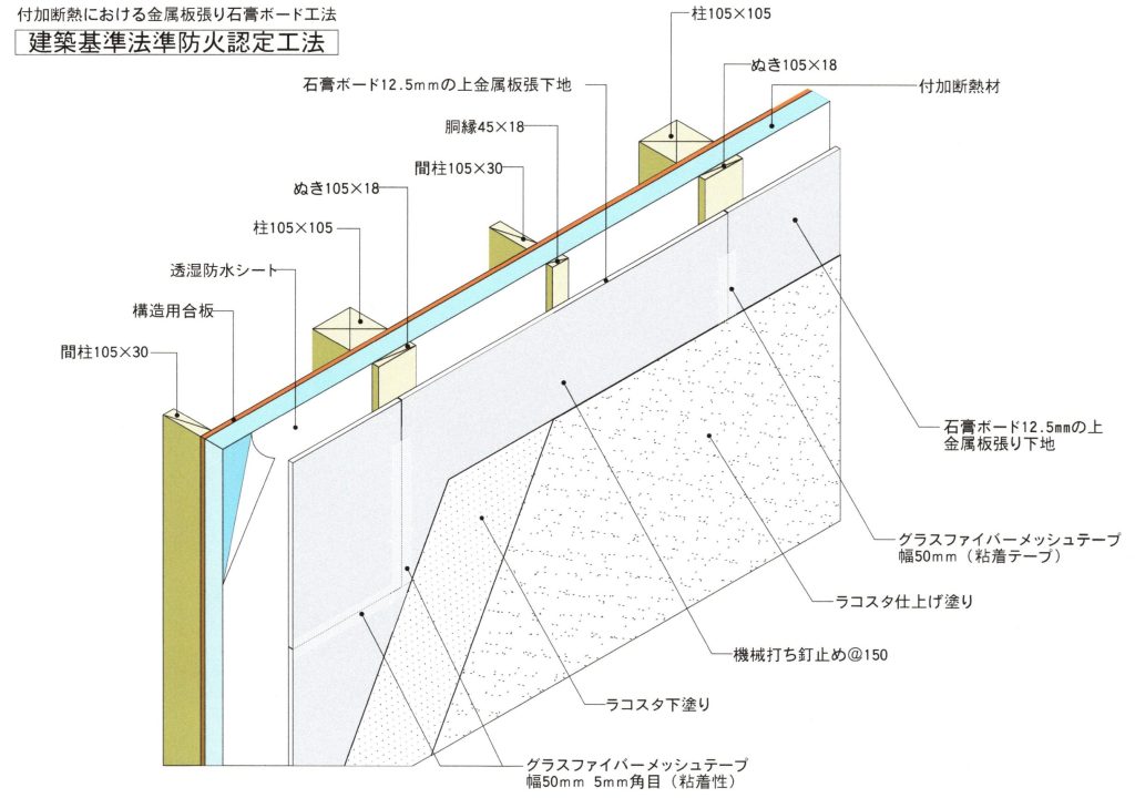 木造付加断熱防火認定/石膏ボード金属板張り下地