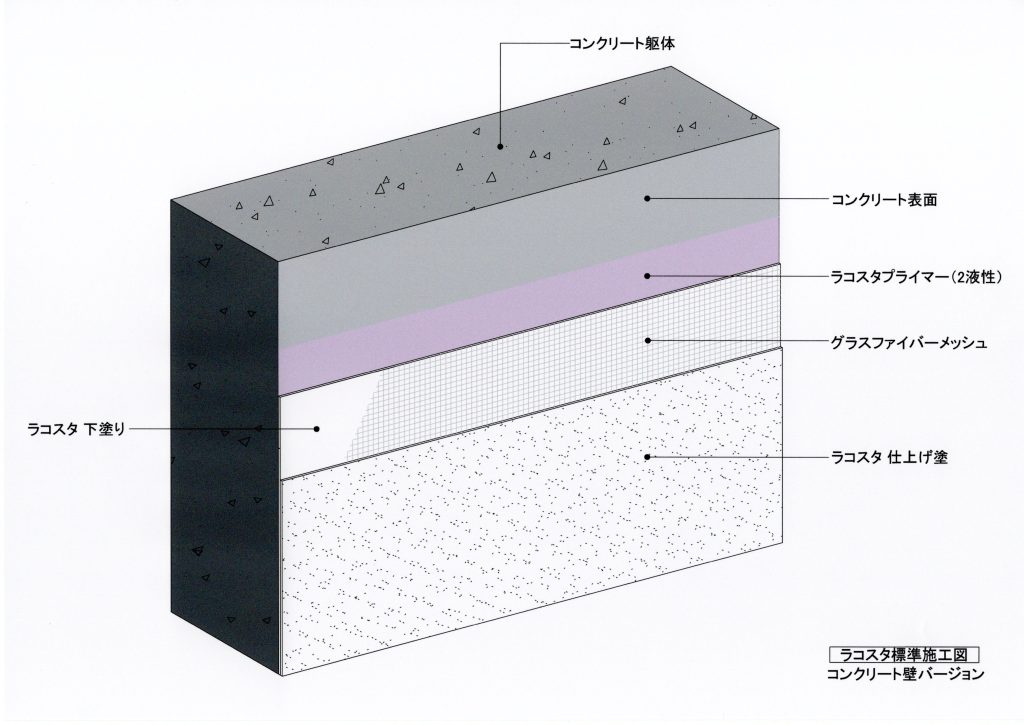 ※注:ラコスタは必ず下塗りと上塗りの2度塗り以上、又は塗り厚2mm以上になるよう施工するようにして下さい。